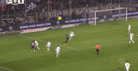 第66分钟,迪奥曼德弧顶处起脚射门得分打破僵局,莱比锡1-0圣保利