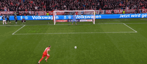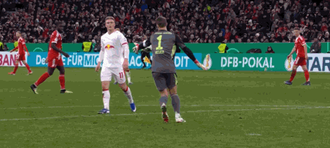 第90分钟,诺伊尔开大脚球,哈德伸腿挡出