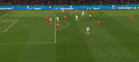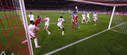 第9分钟,有点滑稽,凯恩门前头球攻门击中队友头部