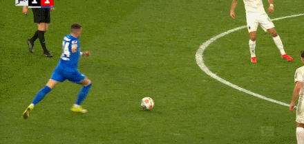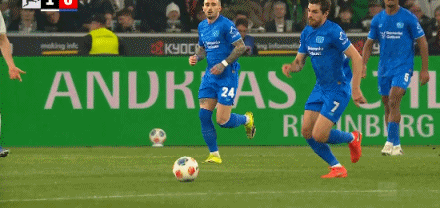 第45分钟,加西亚打门,桑德尔自摆乌龙,门兴1-1药厂